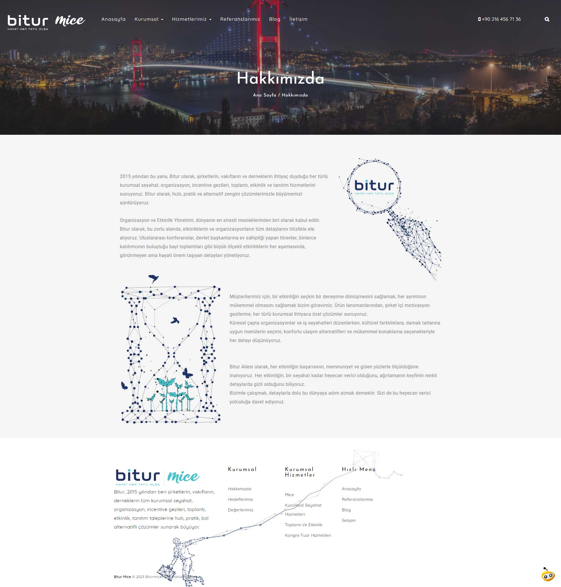 2015 yılından bu yana Bitur, şirketlerin, vakıfların ve derneklerin ihtiyaç duyduğu kurumsal seyahat, organizasyon, incentive gezileri, toplantı, etkinlik ve tanıtım hizmetlerini sağlamaktadır. Hızlı, pratik ve alternatif zengini çözümler sunarak büyümesini sürdürmektedir.