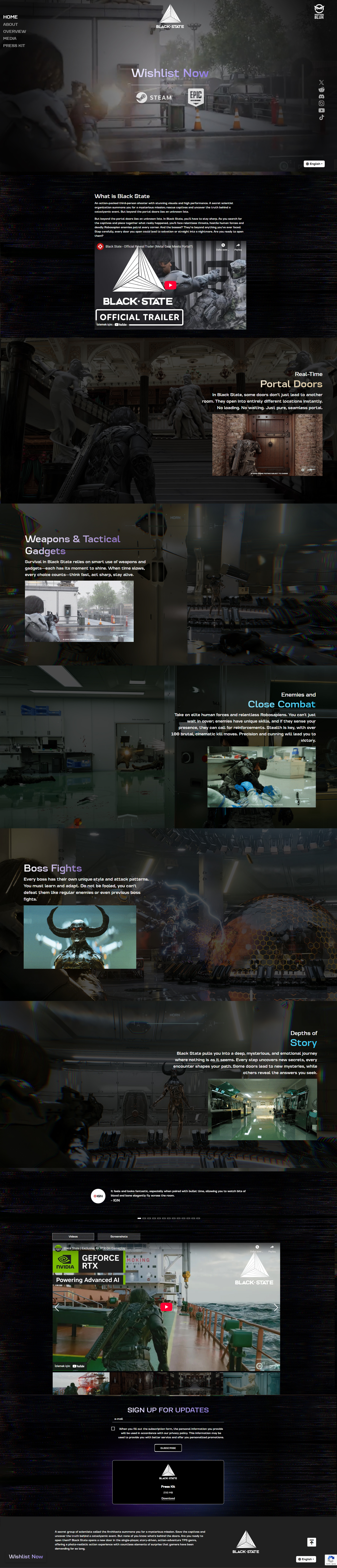 Motion Blur tarafından geliştirilen Black State, karanlık atmosferi ve yoğun aksiyonuyla dikkat çeken bir yapım olarak öne çıkıyor. Aora Digital Agency olarak, bu oyunun resmi web sitesini tasarlayarak oyuncuların Black State dünyasına ilk adımdan itibaren dahil olmasını sağladık.