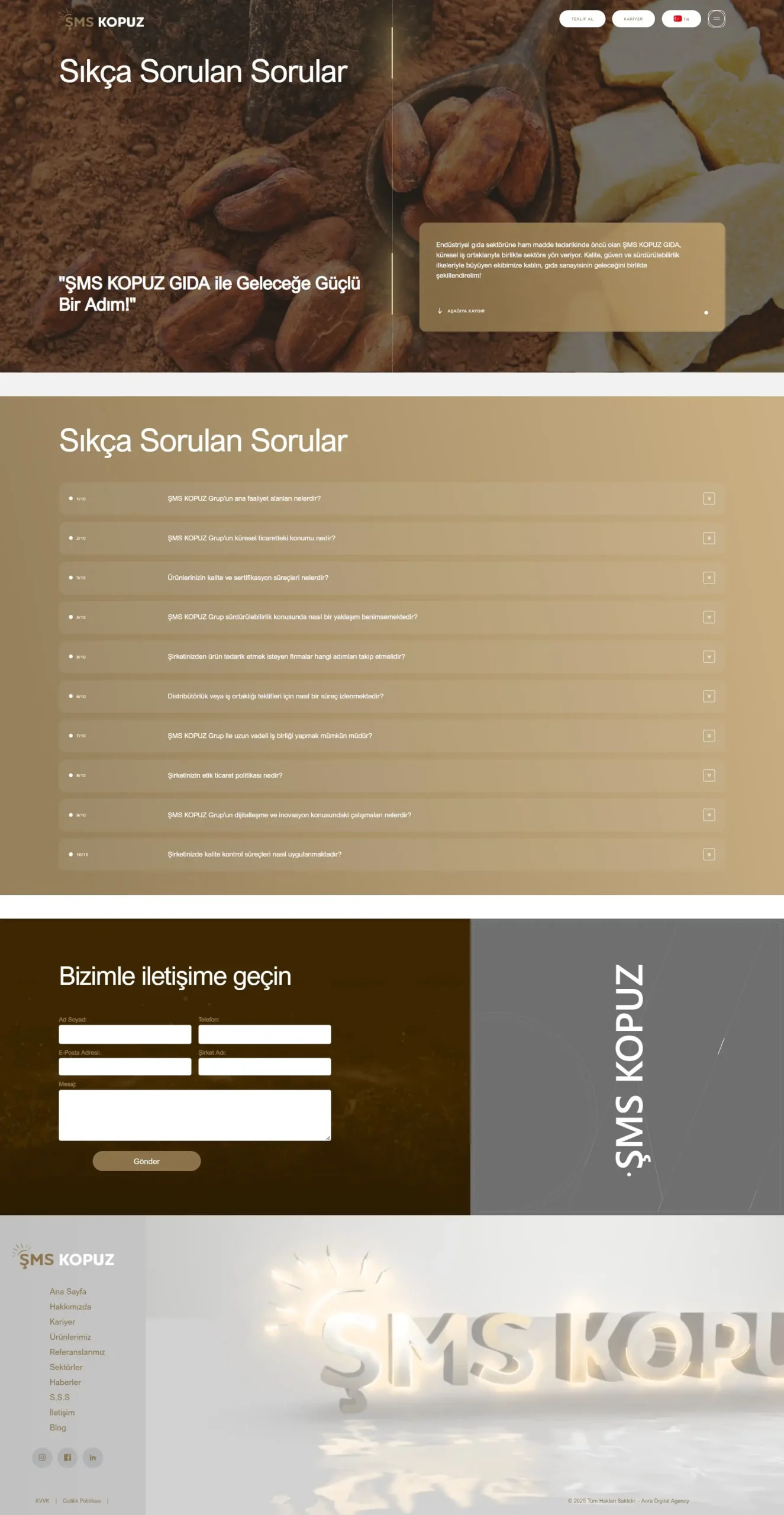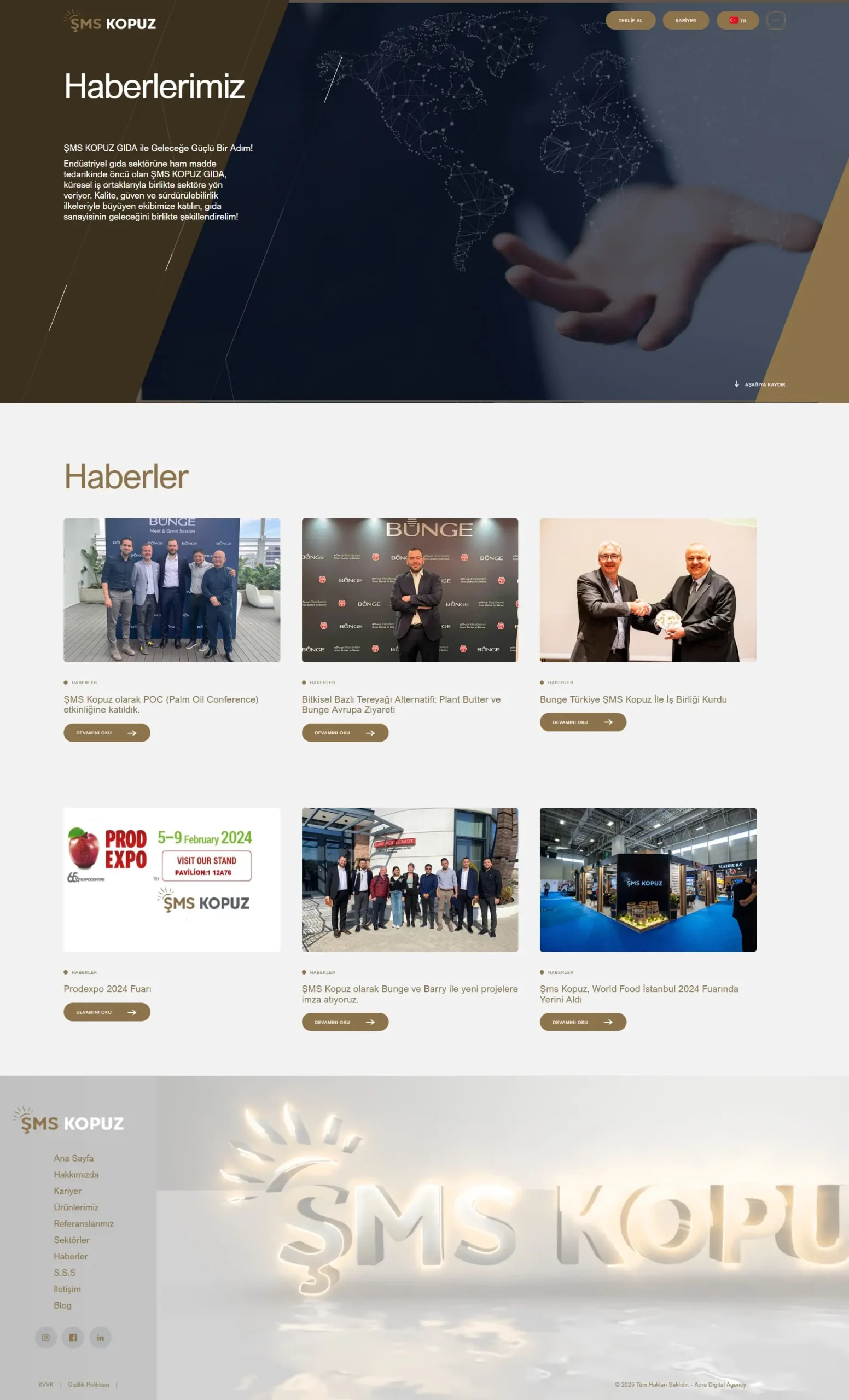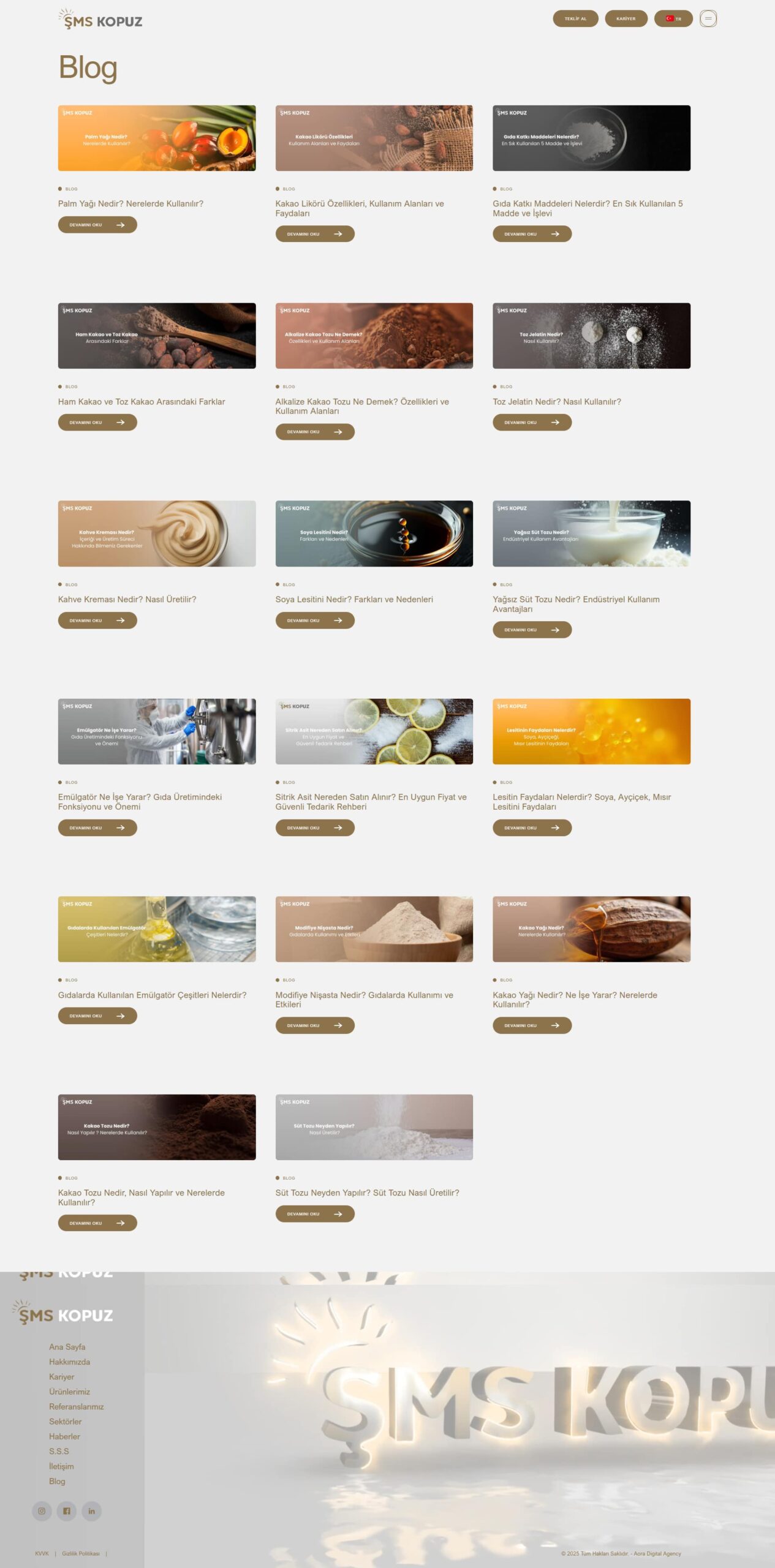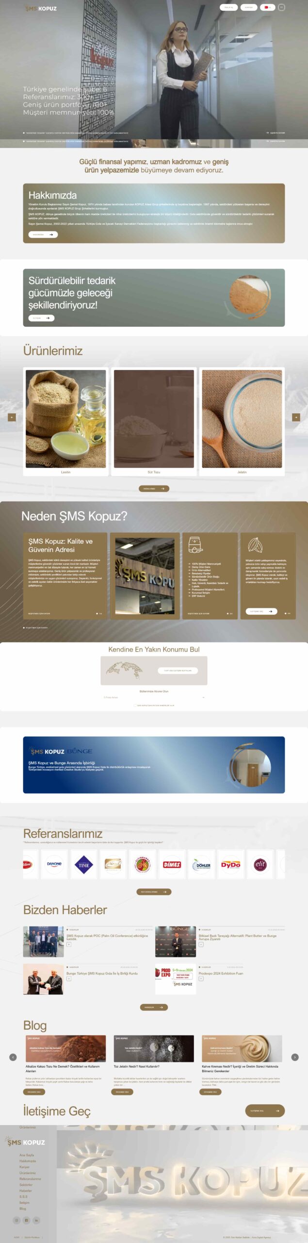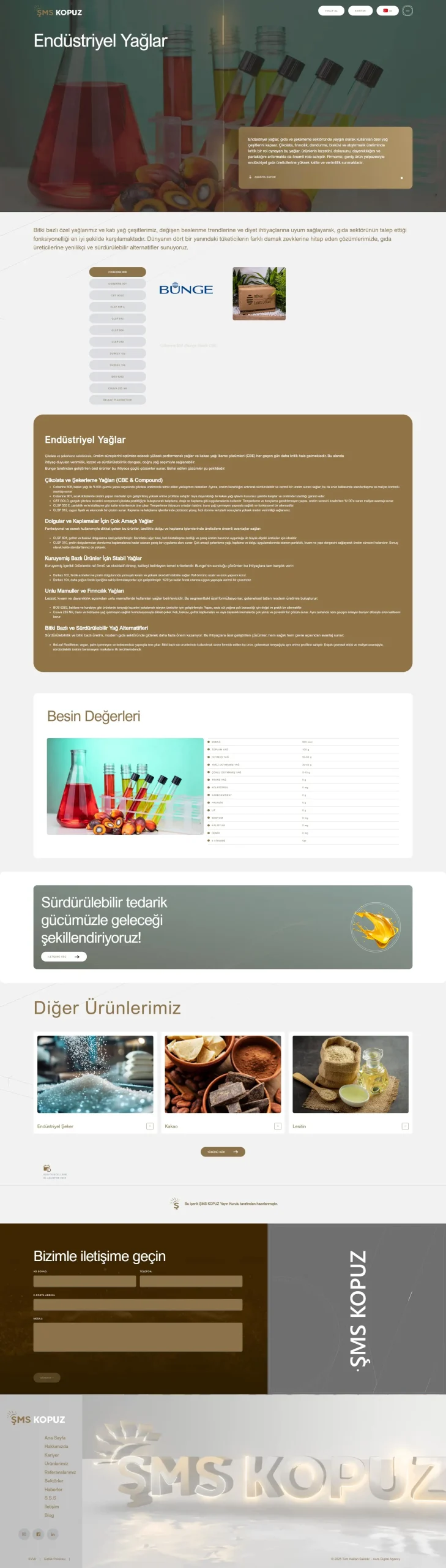 Firma, dünyanın sayılı üreticileri arasında yer alan Bunge Loders Croklaan markasının Türkiye’deki tek yetkili distribütörü olarak da faaliyet göstermektedir. 3 kıtada 20’den fazla ülkeye ihracat gerçekleştiren şirket, aynı zamanda Türkiye’de sanayiye yüksek kaliteli hammadde tedariği sağlayarak iç pazarda da önemli bir rol üstlenmektedir. Biz de bu projede, ŞMS KOPUZ Grup’un sektördeki güçlü konumunu dijitalde daha görünür kılmak için detaylı bir içerik stratejisi oluşturduk. Web sitesi kullanıcı deneyimi (UX) ve SEO açısından yeniden yapılandırıldı. Markanın kurumsal kimliği, sade ama güçlü bir tasarım anlayışıyla dijital ortama aktarıldı. Hedefimiz, potansiyel müşterilerin hem ürünlere kolayca ulaşmasını sağlamak hem de markaya duyulan güveni pekiştirmekti.